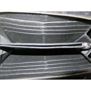 Coach Black Pebbled Leather Double Zip Around Accordion Continental Long Wallet.
