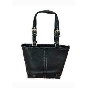 Coach Black Pebbled Leather Tote Bag F13089 Women’s Shoulder Bag Silver Hardware Buckle Straps