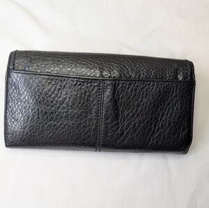 -Pocket on back, turn lock front with 13 card slots, ID slot, zippered pocket & four open pockets