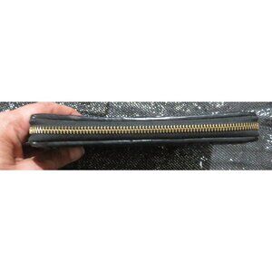 Coach Black Quilted Leather Zip Around Accordion Continental Long Wallet. There are 12 card slots and an interior zipper coin compartment.