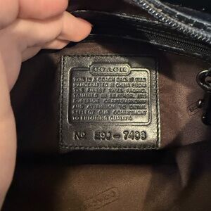 Sleek and stylish design. Perfect for everyday use. Timeless black color. Brown interior with inner zip pocket. Rare style of coach bag