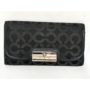 Coach Black Signature C Canvas Wallet w/ Snap Closure & Leather Trim Classy