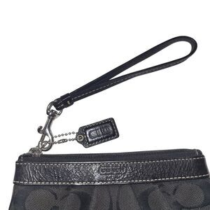 Coach Black Signature C Jacquard Wristlet with Leather Trim & Hangtag 6x4