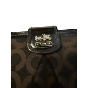 Coach Black Signature C Wallet Accordion Style Patent Leather Trim Logo Snap