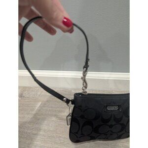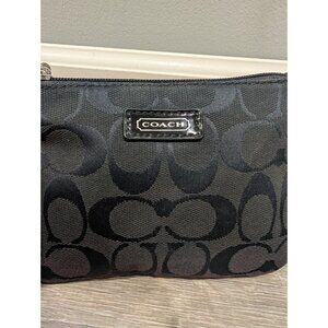 Coach Black Signature Jacquard Canvas Leather Wristlet Pouch Purse with Hang Tag. Please let me know if you have any questions. Thanks for looking!