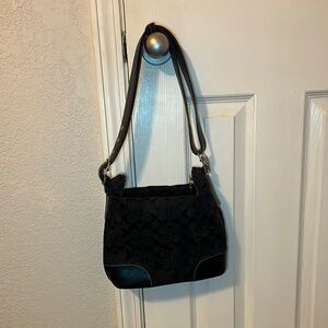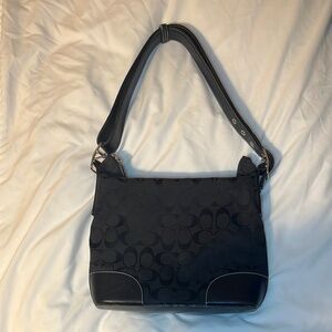 Coach Black Signature Shoulder Bag | Leather Trim | Classic Style