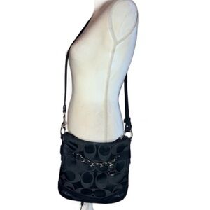 Coach Black Signature Silver Chain ShoulderBag Adjustable Strap