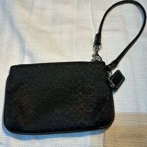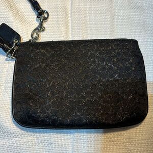 Coach Black Signature Silver Metallic Wristlet