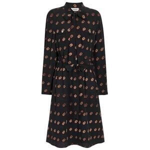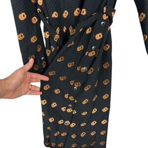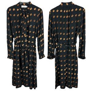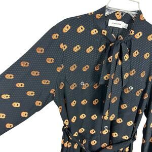 Coach Black Silk Printed Long Sleeve Tie Midi Dress 8 M