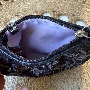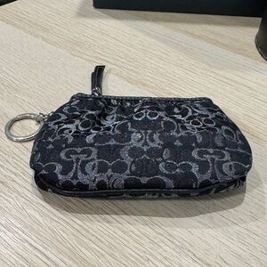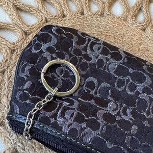 Coach Black Silver Metallic Signature C Vintage Mini Coin purse Pouch Keychain