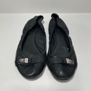 Gently worn women’s size 6-inner size tag removed coach soft leather round toe ballet flats. Please review all photos for any signs of wear-pictured as is. Disclaimer: Any items with any wear/staining has not been treated, and unsure of ability to remove/treat condition. Comes from a smoke free home, bundle with other items to save & minimize shipping cost.