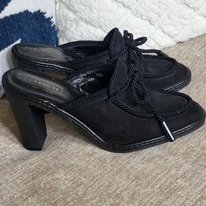 Coach Black Suede Leather Jenn Shoes Mules Slip on Platform..