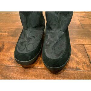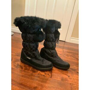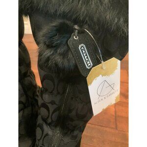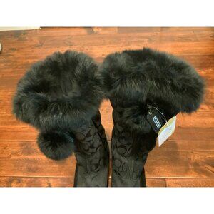 Coach Black Theona Knee High Winter Boots W/ Rabbit Fur Trim, Size 9 (US)