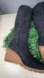 Side zip closure. Suede upper/genuine shearling (Turkey) and leather lining/rubber sole.