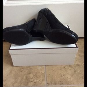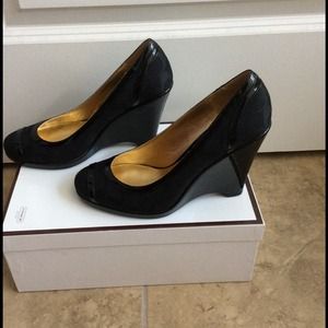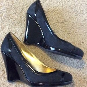 Coach Black Wedges with Coach Signature pattern and patent leather platform. Size 6.5. 4"heel. Almost new condition.