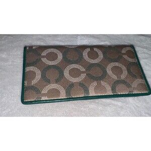 Coach Black Women’s Checkbook Cover Signature Canvas Leather Trim Beige Green