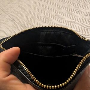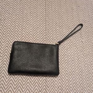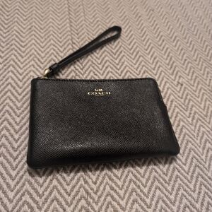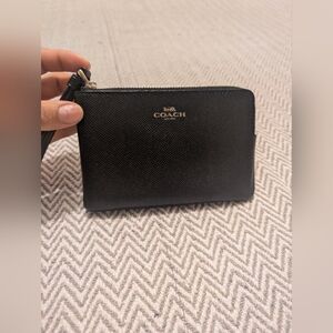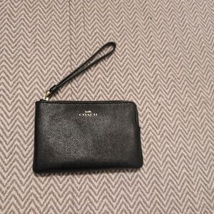 Sleek black wristlet by Coach. Perfect for carrying essentials.