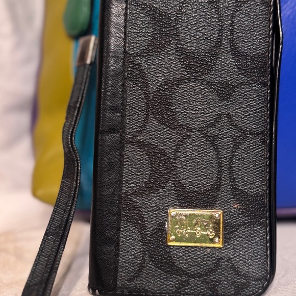 Coach Black Wristlet with Gold Accents