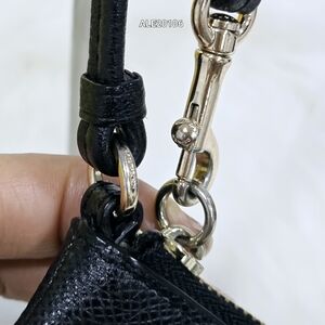 Elegant black wristlet with a visible logo. Perfect for carrying essentials.