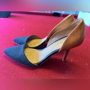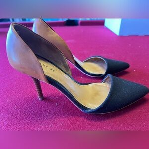 Elegant Coach heels with a sleek black and brown design. Perfect for any occasion.