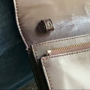 Elegant Coach wallet with signature embossed design. Features black and brown tones. See pics for condition. One small rub on inside loop.