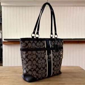 In Excellent Condition and absolutely beautiful describes this Coach Black and Gray Heritage Stripe Tote Bag Purse.