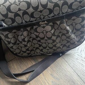 Stylish and functional, this Coach messenger bag features a sleek black and gray design. Perfect for everyday use, it combines elegance with practicality.