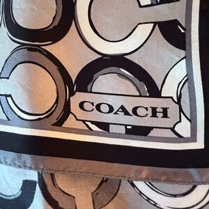 Elegant Coach scarf with a stylish black and gray pattern. Perfect for adding a touch of sophistication.