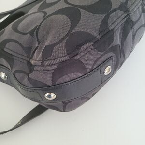 Elevate your style with the Coach Signature Shoulder Bag. Featuring a sleek black and gray design, this bag is perfect for any occasion. Enjoy the luxury and functionality of Coach.