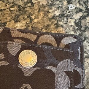 Coach Black and Gray Signature canvas and leather zip around Wallet EUC