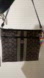 Fair Coach crossbody with iconic pattern. Features brown and tan design. Ideal for daily wear. callouts are all on back.