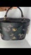 Chic Coach satchel in black with pink floral accents. Features a top handle and gold hardware.