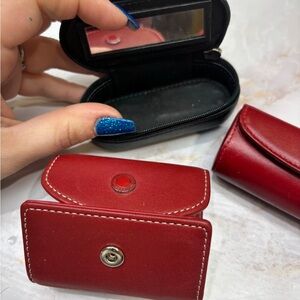 Lipstick cases. Red one with coach button is a contact lense case. New unused.