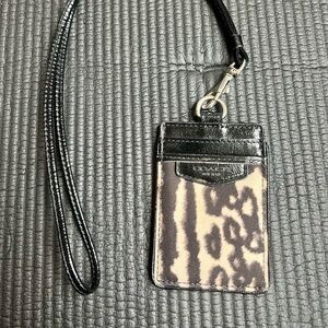 Chic ID holder with animal print design. Features a sleek black lanyard. Ideal for everyday use.