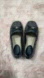 Elegant black espadrilles with signature Coach design. Features tan woven sole and decorative tassels.