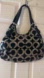 Elegant Coach shoulder bag with iconic pattern. Black and tan design. Ideal for chic daily use.