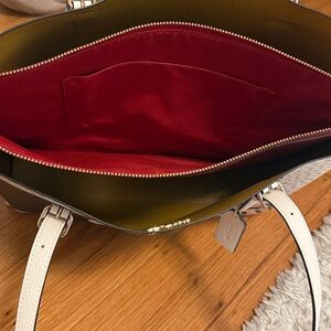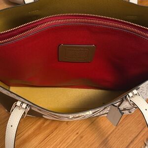Stylish Coach tote featuring a bold Mickey Mouse design. Black and white color scheme. Perfect for casual outings.