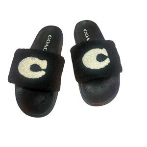 Stylish Coach sandals with a bold logo design. Comfortable slip-on style. Perfect for casual wear.