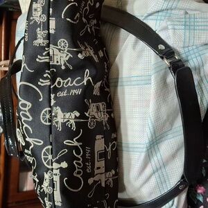 Stylish Coach women's bag in classic black and white. Perfect for any occasion with its elegant design and durable material.