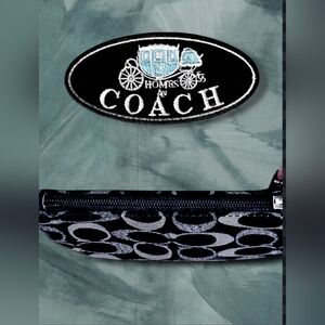 Coach Black w/ Stitched Metallic Silver C Print Wristlet Wallet Coin Zip Purse