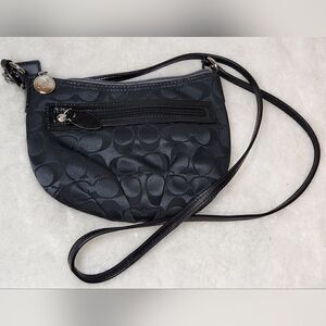 Coach Black Fabric and Patent Leather Zipper Small Shoulder Crossbody Bag