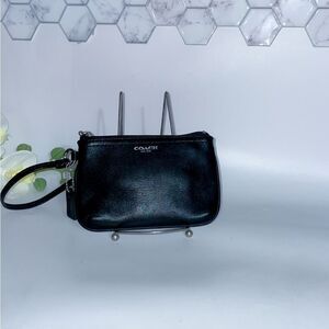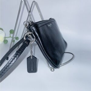 This sophisticated black leather clutch from Coach showcases a sleek design, ideal for elevating any outfit. Crafted with high-quality materials, it embodies a timeless elegance that suits both casual and formal settings. Its minimalist aesthetic ensures it remains a versatile staple in your accessory collection.