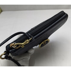 Coach Bleecker Black Canvas Leather Trim Signature Buckle Flap Closure Wristlet