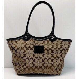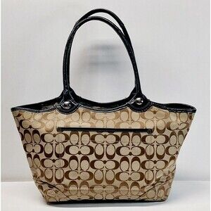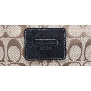 Coach Bleecker Jaquard Brown Black Leather Signature C Logo Tote Shoulder Bag
