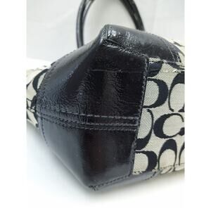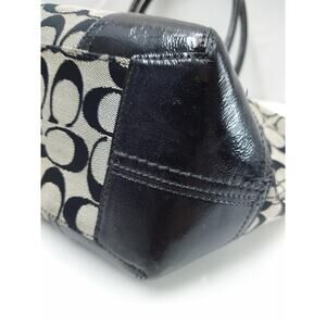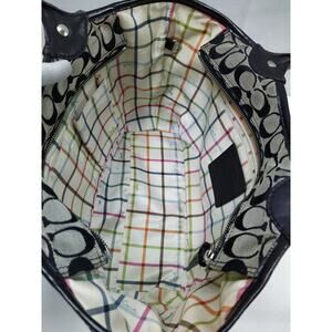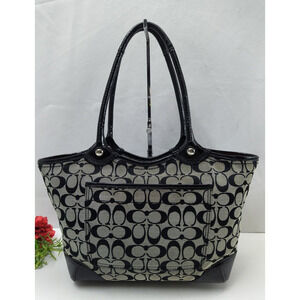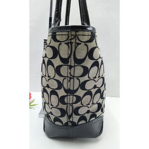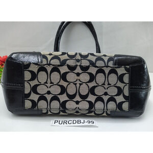 Coach Bleecker Signature Black Canvas Leather Trim Top Handle Tote Shoulder Bag