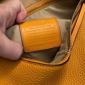 It features a top handle, zip closure and detachable, adjustable cross-body strap for added convenience. The outside features a zip pocket on the back, with two slip pockets and zip pocket inside. Does not include the Coach hang tag. The first photo is stock photo and not of the actual purse.