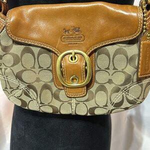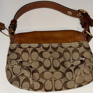 Coach Bleeker Brown & Tan Signature Jacquard Fabric Leather Shoulder Bag 11441