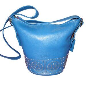 Coach Bleeker Cobalt Blue Pebbled Leather Studded Duffle Crossbody Bucket Bag