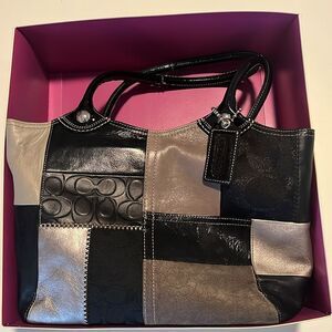 Coach Bleeker Gray and Black Patchwork Women's Bag F14045 with Coach Box