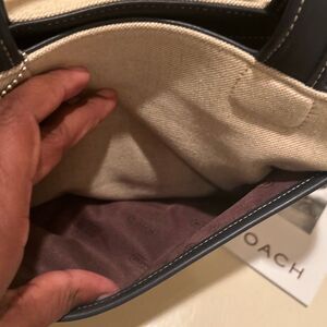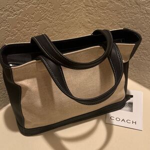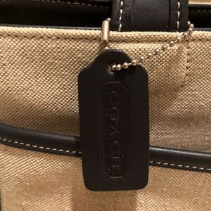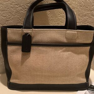 Coach Bleeker Leather Trim Linen Canvas Tote Bag Top Handle Coastal Minimalist